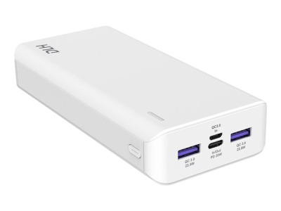 DLH - Banque d'alimentation - 20000 mAh - 20 Watt - 4.5 A - PD, Quick Charge 3.0 - 3 connecteurs de sortie - sur le câble : USB, USB-C - blanc