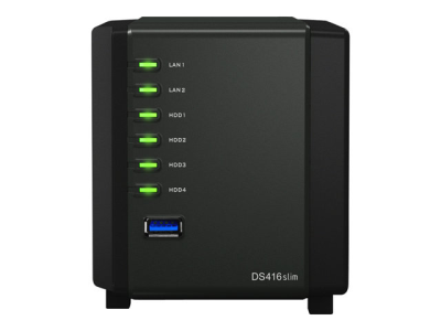 Synology Disk Station DS416slim - Serveur NAS - 4 Baies - SATA 6Gb/s - RAID 0, 1, 5, 6, 10, JBOD - RAM 512 Mo - Gigabit Ethernet - iSCSI