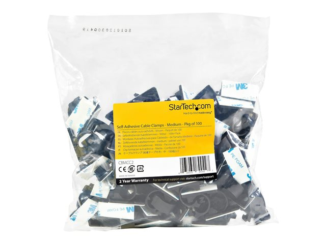 StarTech.com 100 Pinces Attache Câbles Adhésives Noir, Organiseur Câbles Réseau/Ethernet/Bureau/Ordinateur, Range Câbles Bureau Autocollant, Pince Nylon Autocollante Ignifugée UL/94V-2 (CBMCC2) - Attaches de câbles - noir - Conformité TAA (pack de 100) CBMCC2