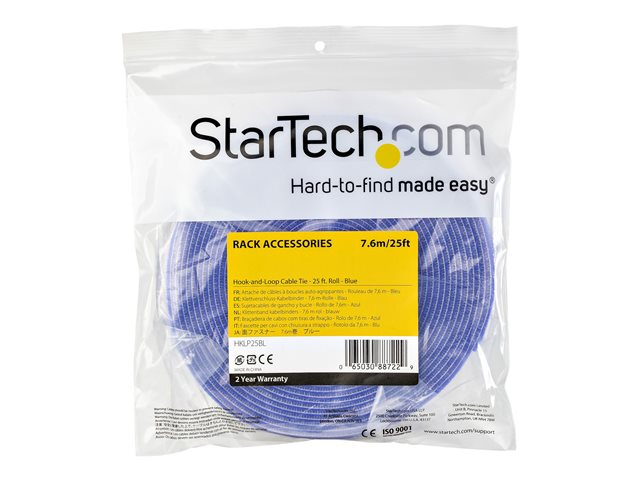 StarTech.com Rouleau de ruban à bouclettes auto-grippantes - 7,6 m - Bleu - Gestion des cables - Reutilisable (HKLP25BL) - Fermeture adhésive - 7.62 m - bleu - pour P/N: CABSHF2POST2, HKLP25, HKLP25GN, HKLP25RD, HKLP25YW