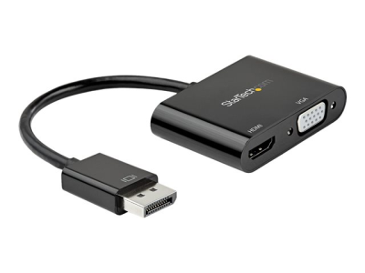 StarTech.com DisplayPort to HDMI VGA Adapter, DisplayPort 1.2 HBR2 to HDMI 2.0 (4K 60Hz) or VGA 1080p Converter Dongle, DP to HDMI or VGA Monitor Adapter, Digital Video Display Adapter - Multiport Video Dongle (DP2VGAHD20) - Adaptateur vidéo - DisplayPort mâle pour HD-15 (VGA), HDMI femelle - 23.2 cm - noir - support 4K DP2VGAHD20