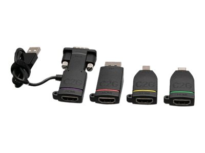 C2G Retractable Universal Mount 4K HDMI Adapter Ring with Color Coded Mini DisplayPort, DisplayPort, USB-C, and VGA - Kit d'adaptateur vidéo - noir - support 4K