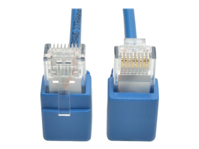 Tripp Lite Cat6 Gigabit Snagless Molded Slim UTP Patch Cable with Right-Angle Connectors - Cordon de raccordement - RJ-45 (M) pour RJ-45 (M) - 30 cm - UTP - CAT 6 - moulé, connecteur à angle droit, sans crochet, bloqué - bleu