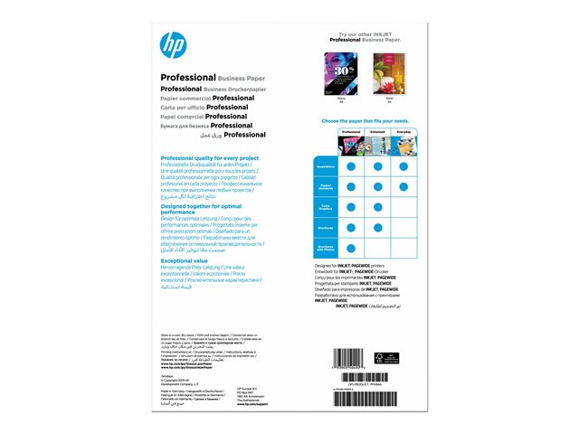 Imprimez vos projets et donnez-leur une apparence professionnelle recto et verso. Le papier professionnel HP Business, finition brillante, est certifié FSC et permet d'obtenir des textes noirs nets et des graphiques aux couleurs vives sur les brochures, les dépliants et les documents marketing.