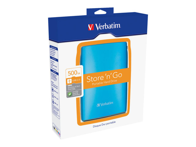 Verbatim Store 'n' Go Portable - Disque dur - 500 Go - externe (portable) - USB 2.0 - 5400 tours/min - bleu des Caraïbes 53011