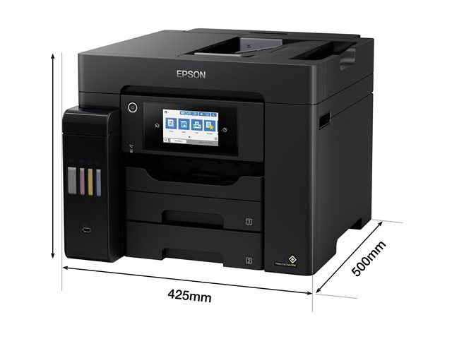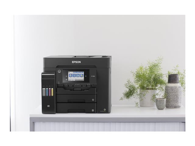 En plus d'offrir un coût d'impression par page extrêmement faible, cette imprimante EcoTank simple d'utilisation réalise vos impressions, numérisations, copies et fax. Les travaux A4 peuvent être réalisés rapidement grâce à la haute vitesse d'impression et de numérisation, aux deux bacs papier A4 à chargement frontal de 250 feuilles, au chargeur de papier arrière de 50 feuilles et au chargeur automatique de documents (ADF) A4 de 50 feuilles. Imprimez selon vos préférences grâce à l'impression mobile, à la connexion Ethernet et à un écran tactile LCD de 10,9 cm.
