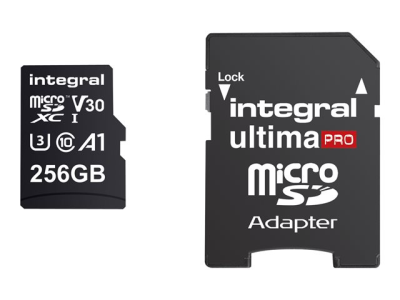 Integral UltimaPro - Carte mémoire flash (adaptateur microSDXC vers SD inclus(e)) - 256 Go - A1 / Video Class V30 / UHS Class 3 / Class10 - microSDXC UHS-I - noir
