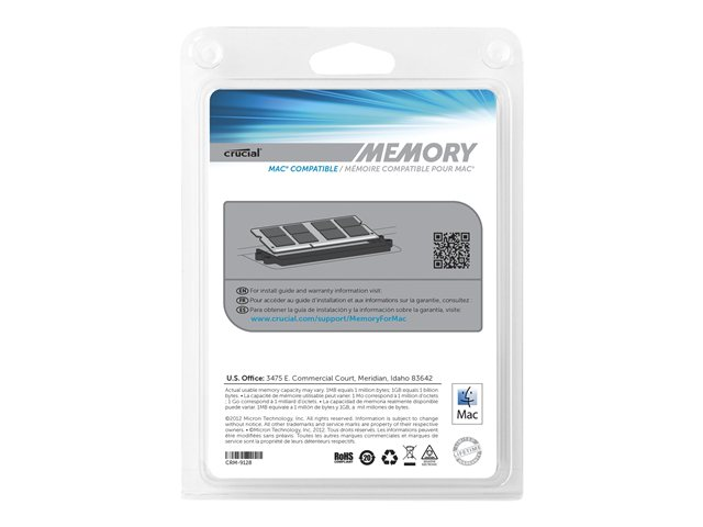 Crucial - DDR3 - kit - 8 Go: 2 x 4 Go - SO DIMM 204 broches - 1333 MHz / PC3-10600 - CL9 - 1.35 / 1.5 V - mémoire sans tampon - non ECC - pour Apple iMac; Mac mini (milieu 2011); MacBook Pro (Après 2011, Début 2011) CT2K4G3S1339M