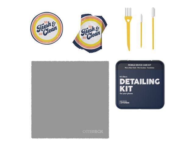 Sodas collants, doigts gras, poussière, saleté et crasse. Occupez-vous de votre appareil comme il se doit, et redécouvrez ce sentiment si agréable que l'on éprouve quand on acquiert un nouveau téléphone. Le Mobile Device Care Kit d'OtterBox dispose de tout le nécessaire pour refaire une beauté à votre téléphone. Pratique, ce kit se glisse dans vos poches ou vos sacs afin que vous puissiez redonner de l'éclat à votre téléphone à tout moment.
