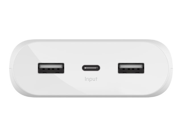 Belkin BOOST CHARGE - Banque d'alimentation - 20000 mAh - 3 connecteurs de sortie (USB, 24 pin USB-C) - sur le câble : USB, USB-C - blanc BPB003BTWT