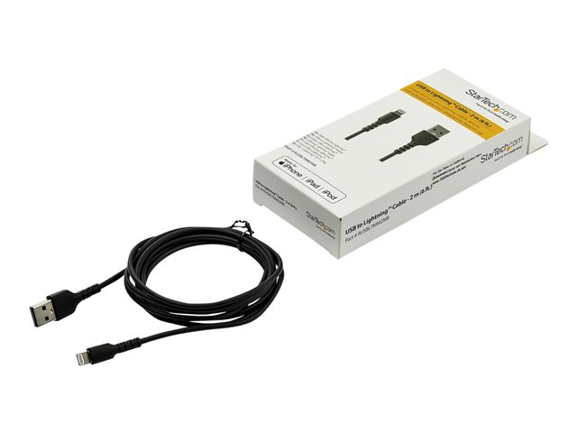StarTech.com Câble USB-A vers Lightning Noir Robuste 2m - Câble de Charge/Synchronisation de Type A vers Lightning en Fibre Aramide - iPad/iPhone 12 - Certifié Apple MFi (RUSBLTMM2MB) - Câble Lightning - USB mâle droit pour Lightning mâle droit - 2 m - double blindage - noir RUSBLTMM2MB