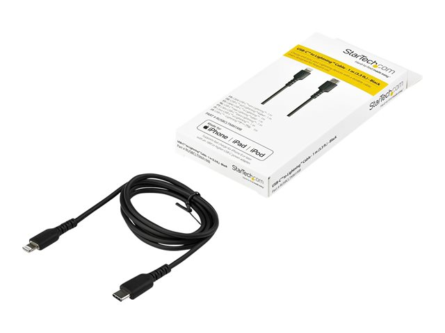 StarTech.com Câble USB-C vers Lightning Noir Robuste 1 m - Câble de Charge/Synchronistation USB Type C vers Lightning Fibre Aramide - iPad/iPhone 12 Certifié Apple Mfi (RUSBCLTMM1MB) - Câble Lightning - Lightning mâle pour 24 pin USB-C mâle - 1 m - noir