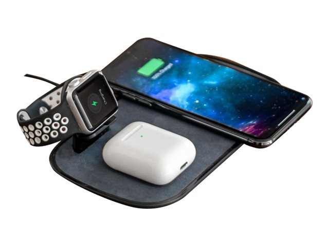 Gardez tous vos accessoires du quotidien chargés avec le socle de charge sans fil 3-en-1 de mophie. Avec une charge sans fil rapide de 7,5 W, obtenir une batterie complète de votre iPhone est plus rapide que jamais. Un endroit dédié pour vos AirPods et votre Apple Watch vous permet de recharger correctement tous vos appareils préférés à partir d'un emplacement central. Vous n'aurez pas besoin de chercher des câbles de charge différents pour chaque accessoire. De plus, l'élégant plateau en verre ajoute une touche de style à n'importe quel bureau ou table.