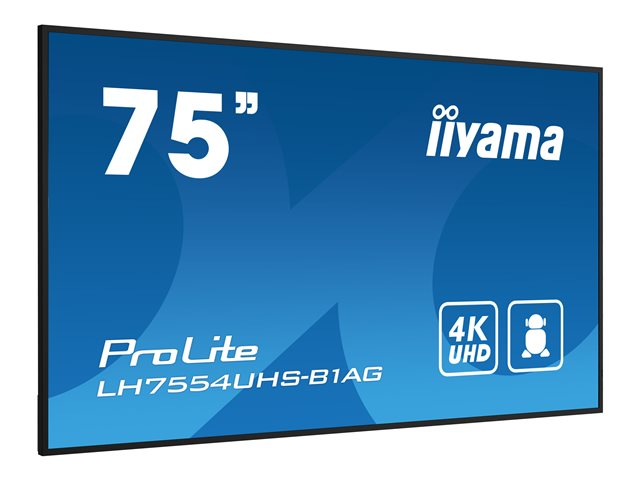 iiyama ProLite LH7554UHS-B1AG - Classe de diagonale 75" (74.5" visualisable) écran LCD rétro-éclairé par LED - signalisation numérique - avec lecteur multimédia intégré, SDM Slot PC - 4K UHD (2160p) 3840 x 2160 - noir, finition matte LH7554UHS-B1AG