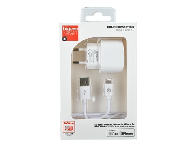 BIGBEN Connected - Adaptateur secteur - 5 Watt - 1 A (USB) - sur le câble : Lightning - blanc