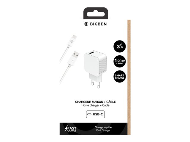 BigBen Connected - Adaptateur secteur - 3 A - Smart IC (USB) - sur le câble : USB-C - blanc CS3AACBLACRW