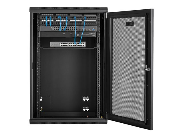 StarTech.com 18U 19" Wall Mount Network Cabinet, 16" Deep Hinged Locking IT Network Switch Depth Enclosure, Assembled Vented Computer Equipment Data Rack with Shelf & Flexible Side Panels - 18U Vented Cabinet (RK1820WALHM) - Armoire de rack - montable sur mur - noir - 18U RK1820WALHM