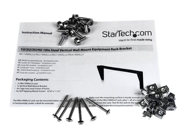 StarTech.com Support mural en acier pour rack 2U - 48 cm - Support de montage - montable sur mur - noir - 2U - 19" - pour P/N: SV831DUSBUK RK219WALLV