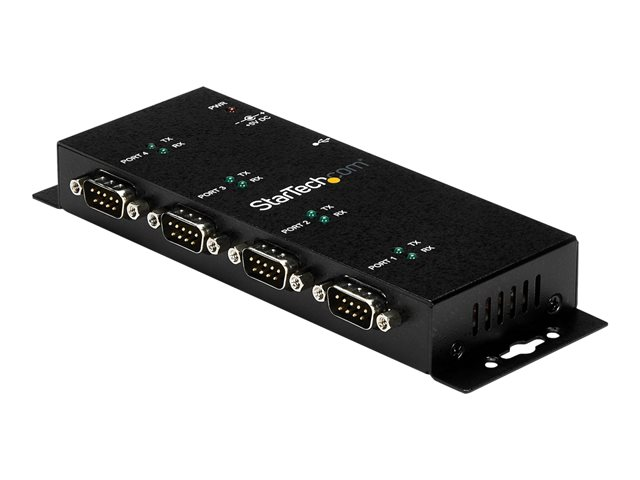 StarTech.com Hub adaptateur USB vers série DB9 RS232 4 ports – Montage sur rail DIN industriel et mural - Adaptateur série - USB 2.0 - RS-232 x 4 - noir