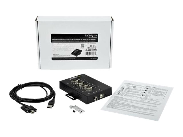 StarTech.com Hub industriel USB vers série RS232 / RS422 / RS485 à 4 ports avec protection électrostatique (ESD) 15 kV - Adaptateur série - USB 2.0 - RS-232/422/485 x 4 + USB 2.0 x 1 - noir - Conformité TAA