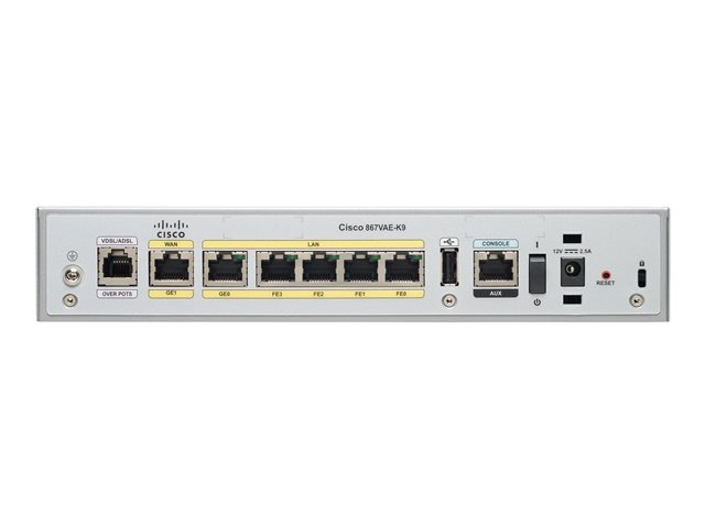 Cisco 867VAE - - routeur - - modem ADSL commutateur 4 ports - 1GbE - ports WAN : 2 - Montable sur rack C867VAE-K9