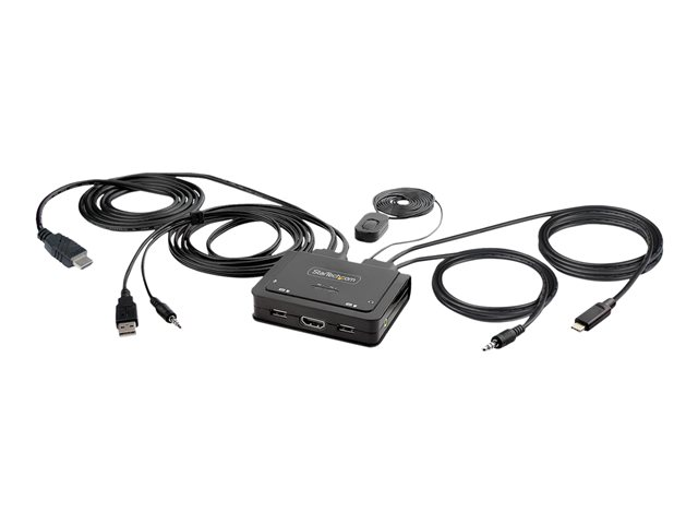 StarTech.com 2-Port Hybrid USB-C HDMI Cable KVM Switch, 4K 60Hz, Compact KVM with 6ft/1.8m USB-A/HDMI/Audio & 4ft/1.2m USB-C Integrated Host Cables, Bus Powered - Remote Push Button/Hotkey Switching (C2-H46-UAC-CBL-KVM) - Commutateur écran-clavier-souris/audio/USB - compact - 2 x KVM / audio / USB - 1 utilisateur local - de bureau
