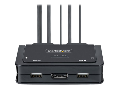 StarTech.com 2-Port USB-C Cable KVM Switch, 4K 60Hz DisplayPort Output, Compact KVM with 4ft/1.2m USB Type-C/Audio Integrated Cables, Bus Powered - Remote Push-Button/Hotkey Switching (C2-D46-UC2-CBL-KVM) - Commutateur écran-clavier-souris/audio - compact - 2 x KVM / audio - 1 utilisateur local - de bureau C2-D46-UC2-CBL-KVM