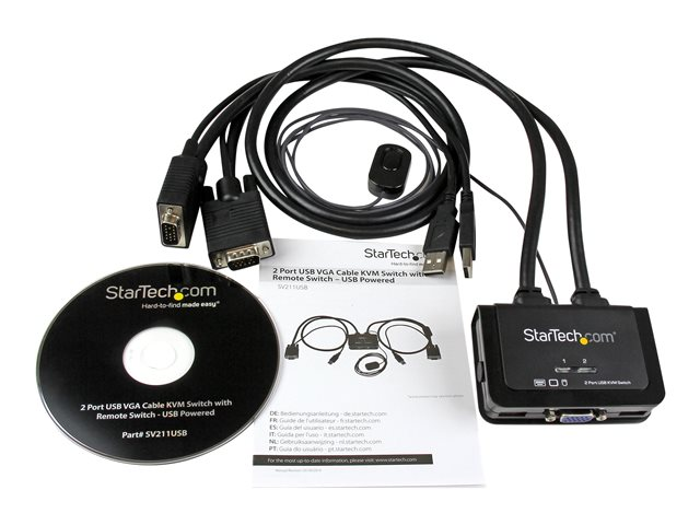 StarTech.com Switch KVM USB VGA à 2 ports - Commutateur écran clavier souris alimenté par USB avec câbles KVM et commutateur à distance - Commutateur KVM - 2 x KVM port(s) - 1 utilisateur local - de bureau SV211USB