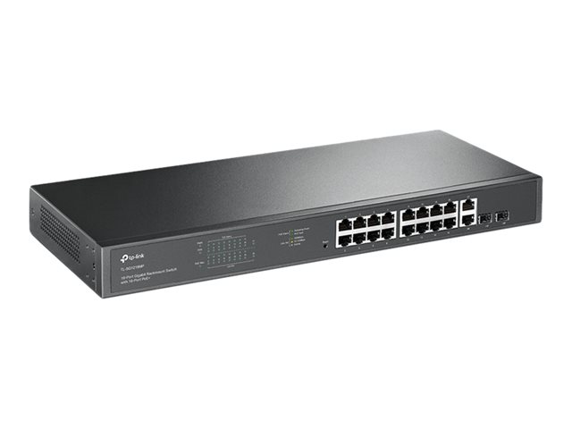 TP-Link JetStream TL-SG1218MP - V1 - commutateur - 16 x 10/100/1000 (PoE+) + 2 x 10/100/1000 + 2 x SFP Gigabit combiné - Montable sur rack - PoE+ (250 W)