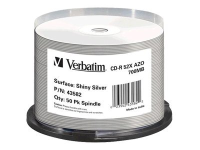 Verbatim - 50 x CD-R - 700 Mo (80 min) 52x - argent brillant - surface imprimable par transfert thermique - spindle 43582